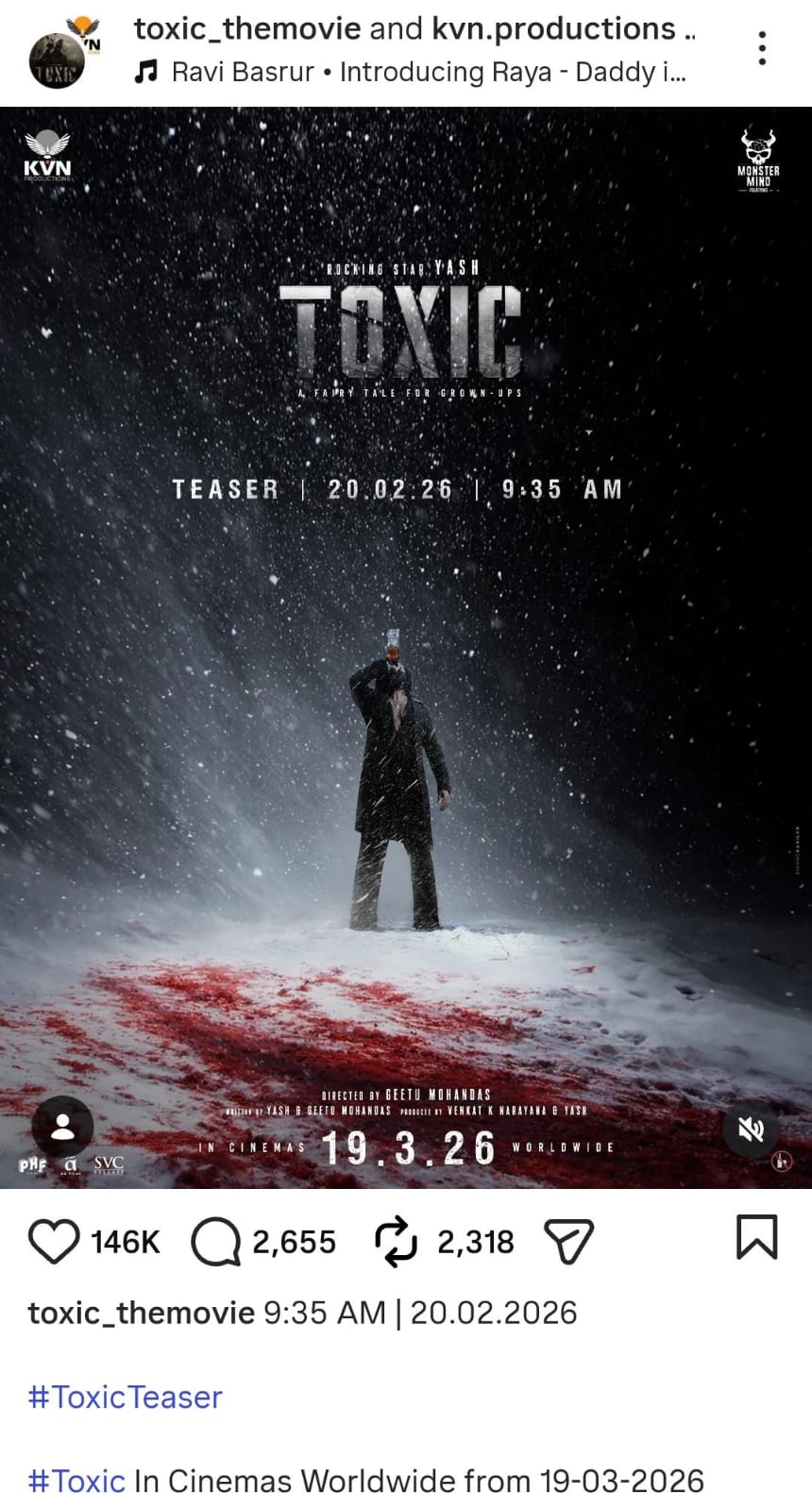 Yash’s fans are very excited on social media and they are eagerly waiting for the teaser to arrive. With the release of the teaser, the promotion of the film may gain further momentum, making Toxic a big cinematic event in March.